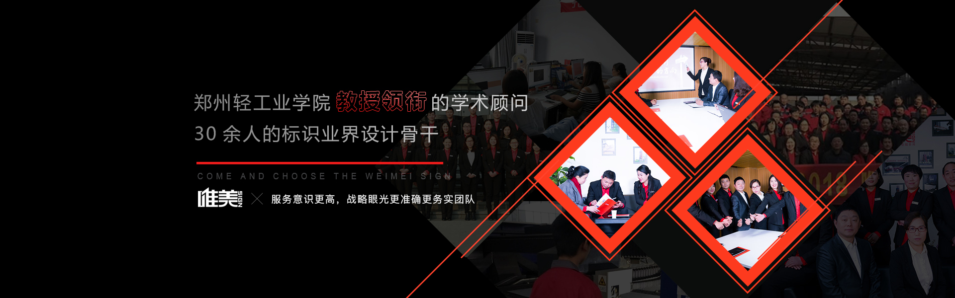 鄭州唯美標(biāo)識設(shè)計制作公司擁有21000平方現(xiàn)代化生產(chǎn)車間、多臺先進(jìn)設(shè)備、100多名技工團隊、12位資深設(shè)計師團隊,嚴(yán)遵19道制作工序和6S管理體系,成功服務(wù)2800多個標(biāo)識項目,3...